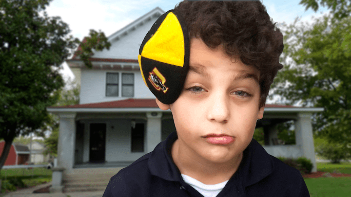 Kippah Hanging Onto Side Of Head For Dear Life